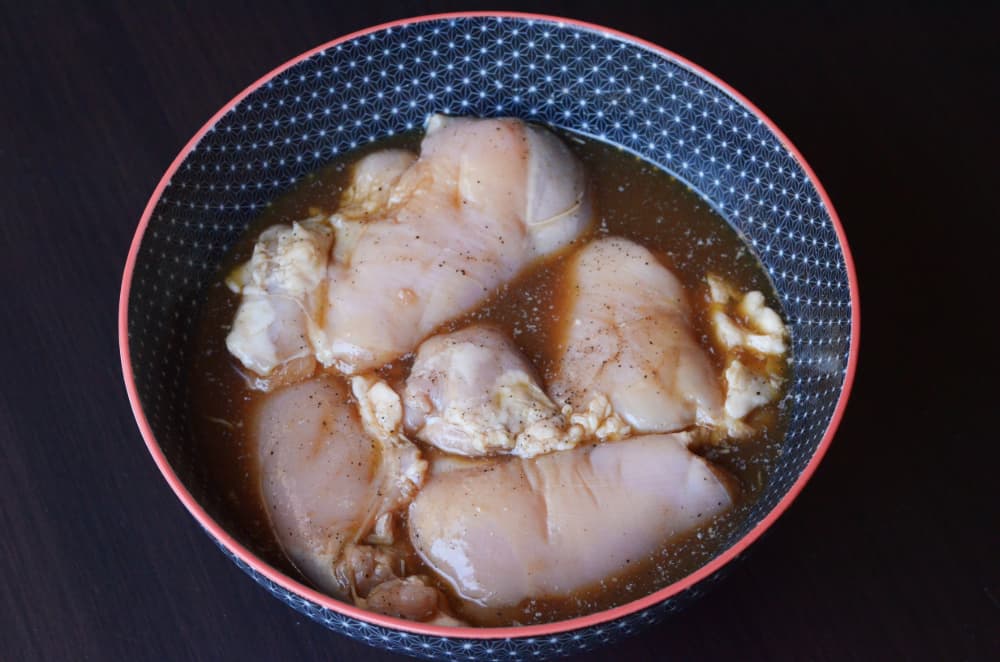 - Place chicken thighs into a large bowl and marinate with marinade mixture for 1 hour or overnight.