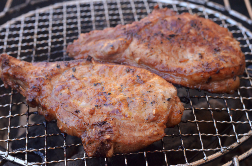 - Grill the pork chops over charcoal BBQ until both sides are golden with light charring. Alternatively, you can cook them on a grill pan or in the oven.