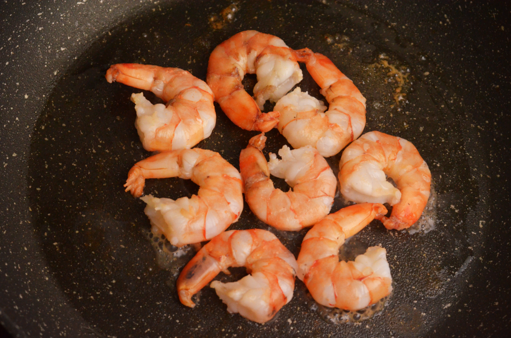 - Marinate prawns with ½ tsp Squid Brand premium fish sauce and ½ tsp sugar for 10 minutes. Sauté prawns until fully cooked. Set aside to cool.
