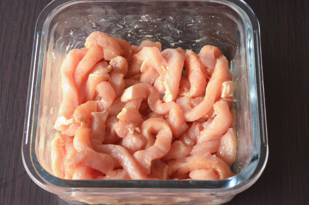 - Marinate pork strips with cornflour, salt, dark soy sauce and Shaoxing wine. Set aside for 15 minutes.