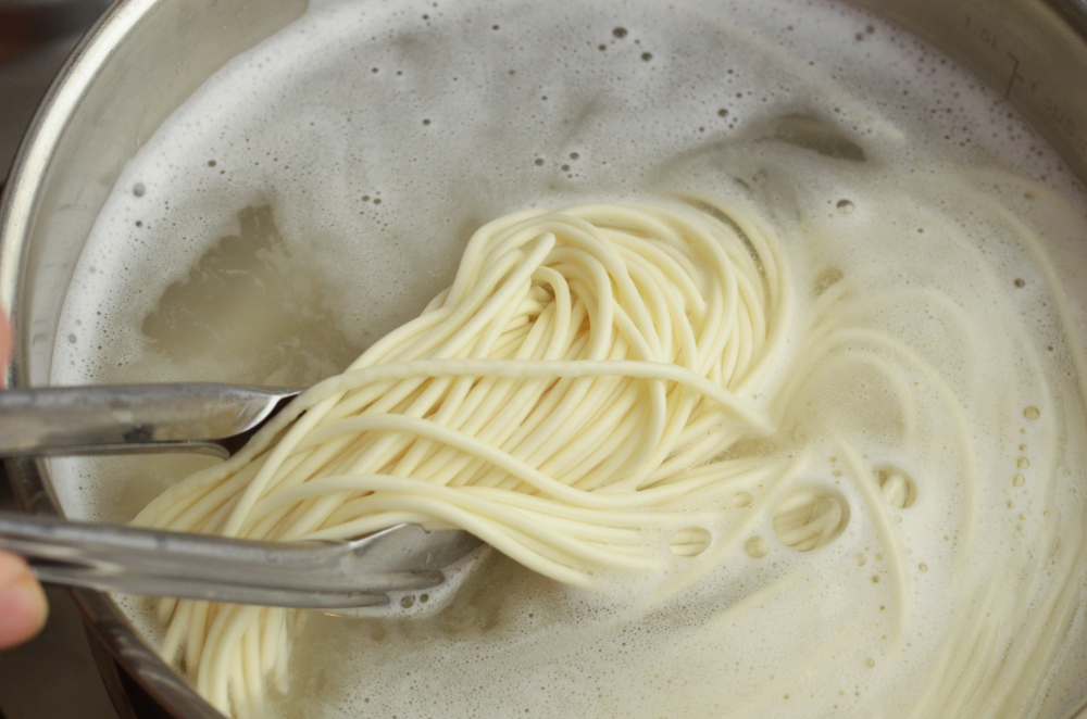 - While waiting for the broth to boil, cook noodles in a separate pot of boiling water until al dente. Drain well.