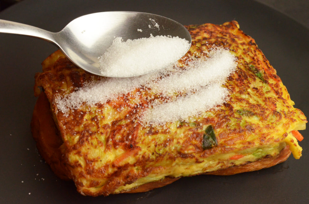 - Spoon sugar over the surface of the patty.