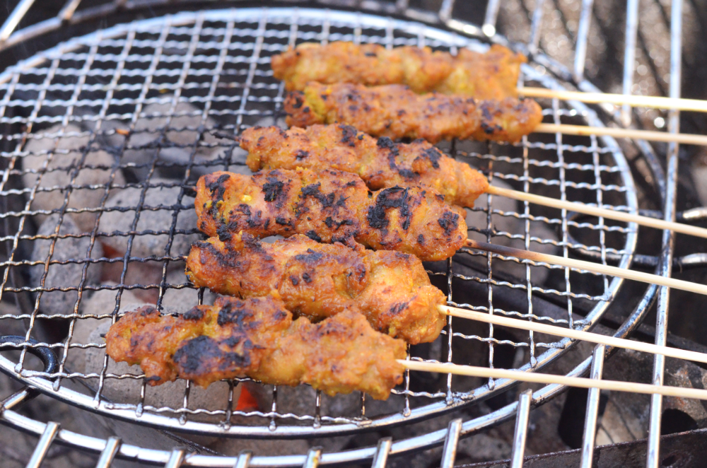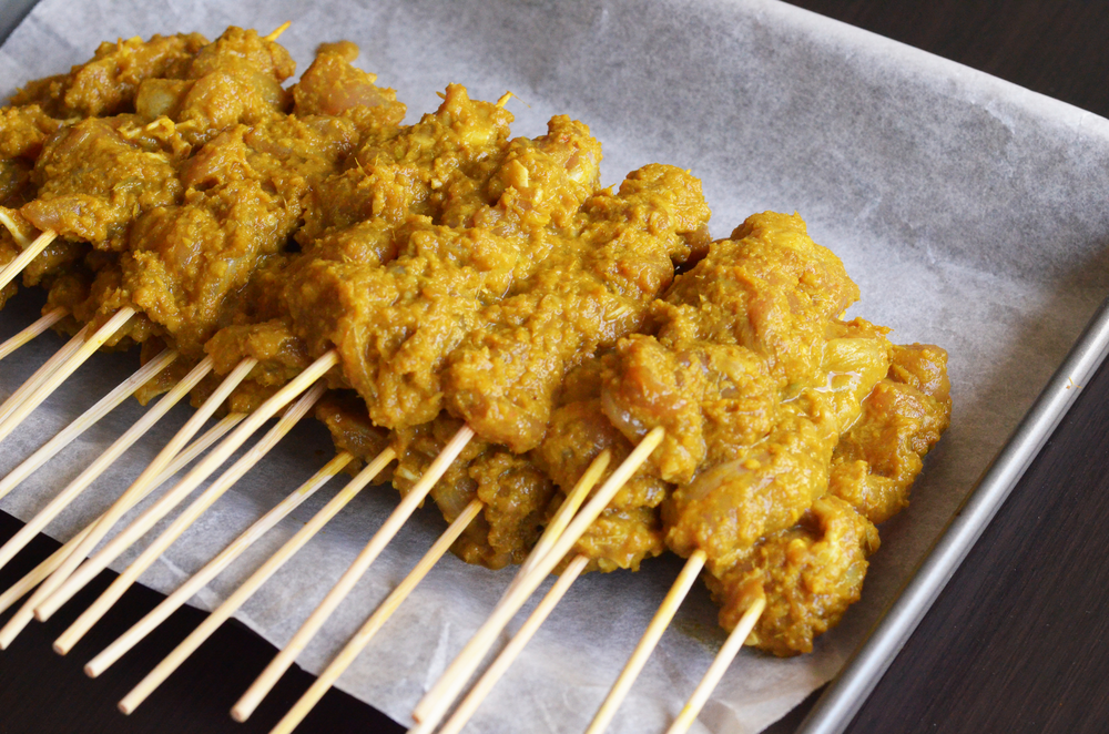 - Thread chicken onto skewers.