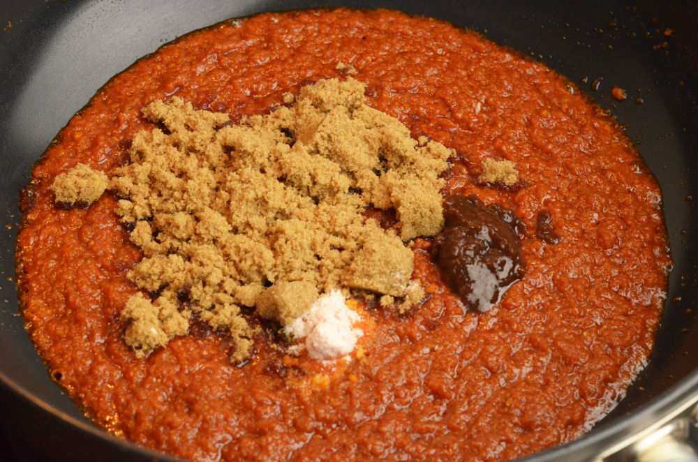 - Add in brown sugar, tamarind paste, lemon juice and salt. Cook for a few mins until bubbling.