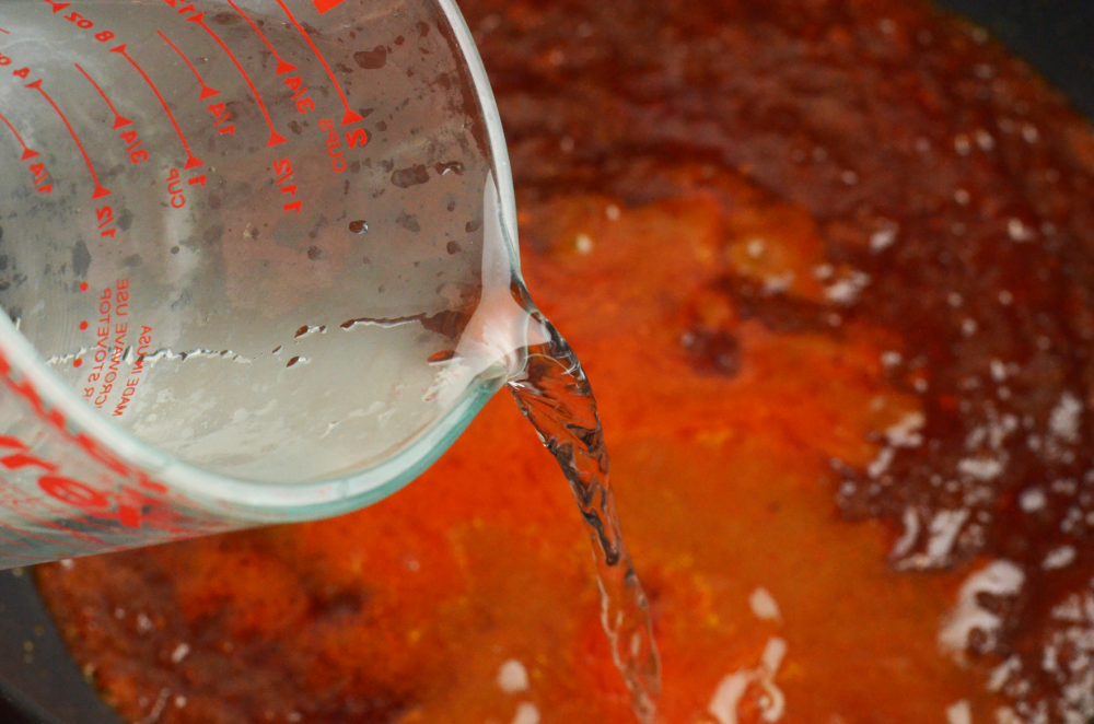 - Pour in water and mix well.