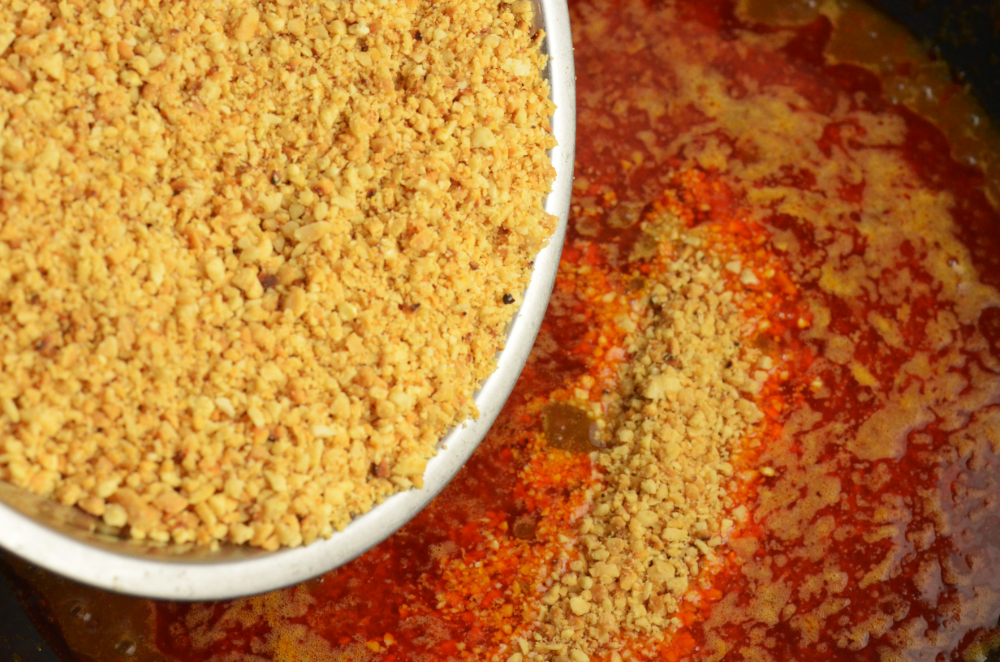 - Add in crushed toasted peanuts and mix until well incorporated.