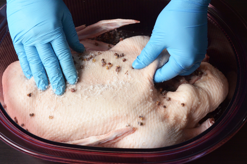 - Clean the duck and pat dry. Rub the cooled salt mixture all over the duck, including inside the cavity. Place in a deep tray, cover, and refrigerate overnight. For better result, hang or place the duck on a rack to air-dry.