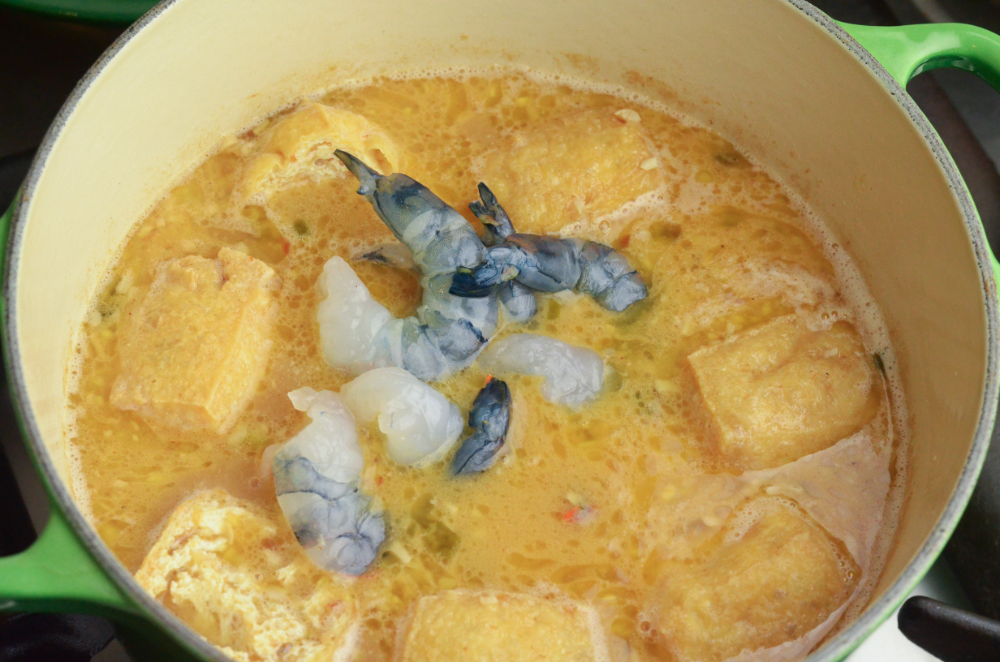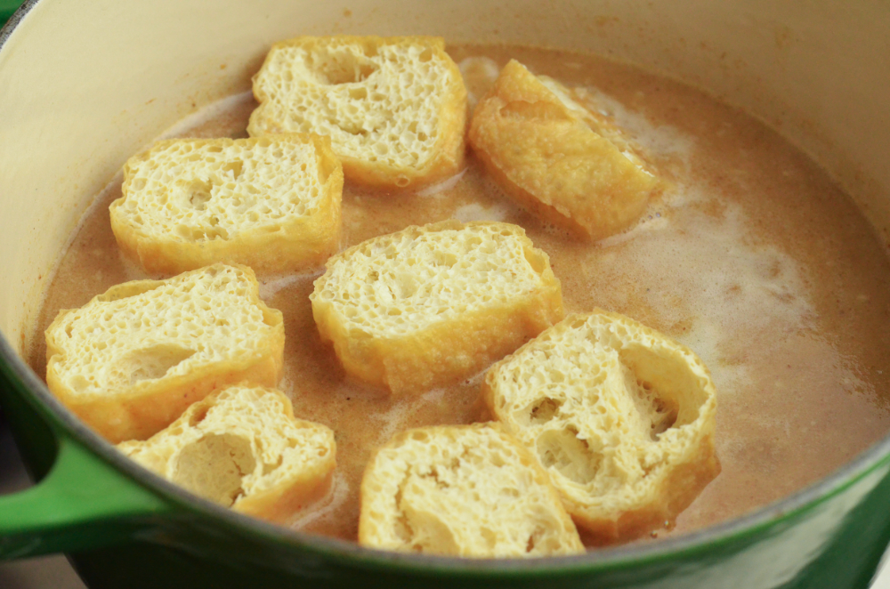 - Toss in tofu puffs and boil until they are softened.
