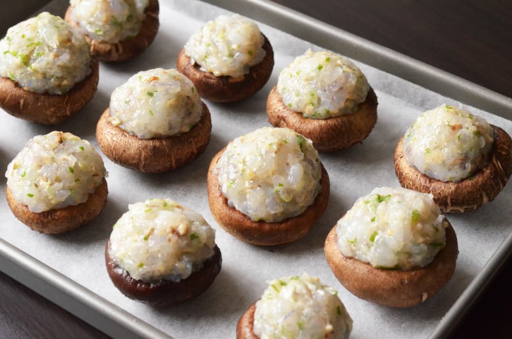 - Stuff mushrooms with shrimp paste until you get a tall doome.