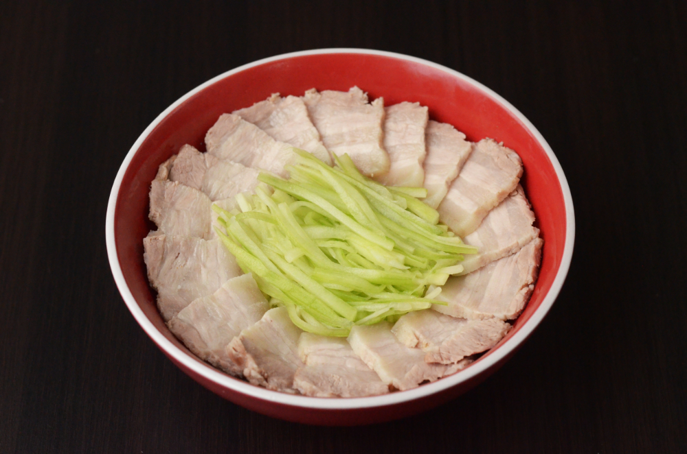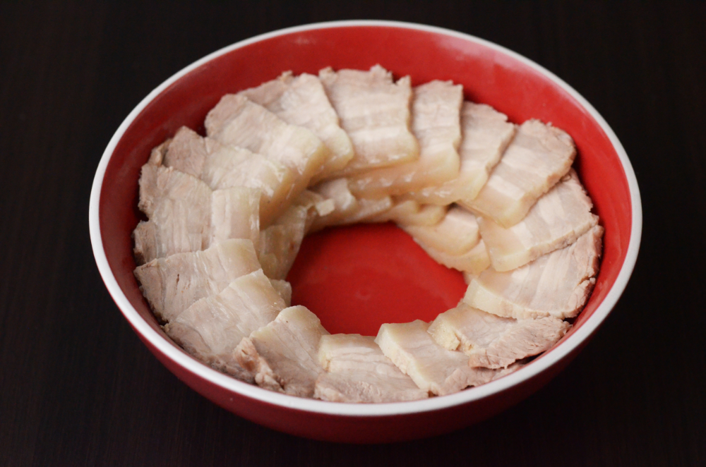 - Slice to 5mm thick. Arrange sliced pork around a medium plate.