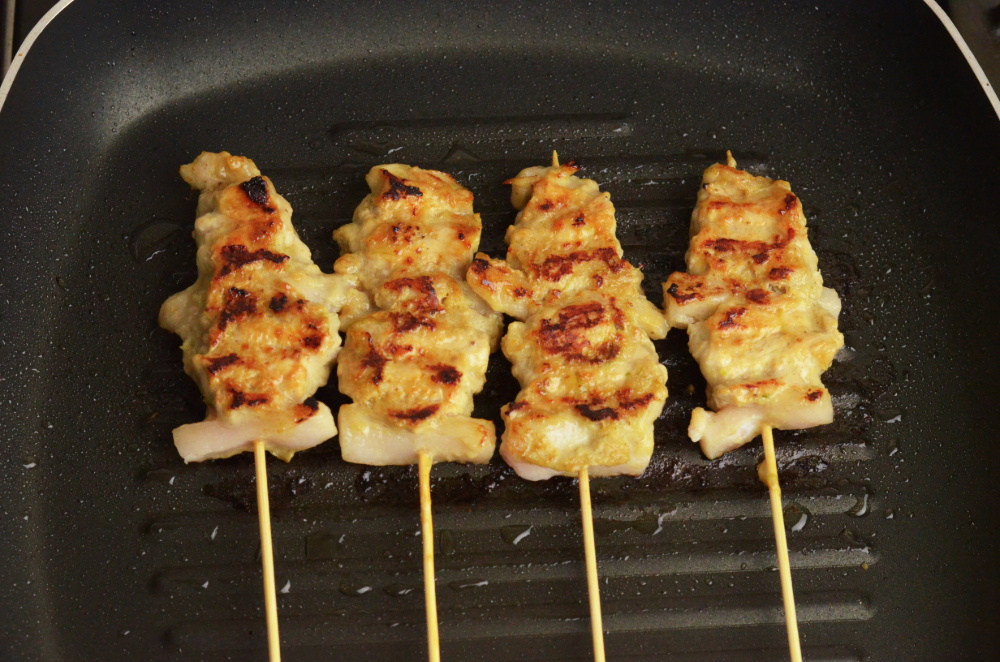 - Heat up BBQ or skillet and grill the skewers in batches. Baste with the leftover marinade.