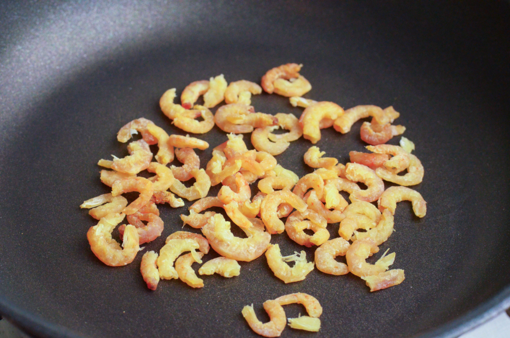 - Rinse the dried shrimp, then toast and grind into a fine floss.