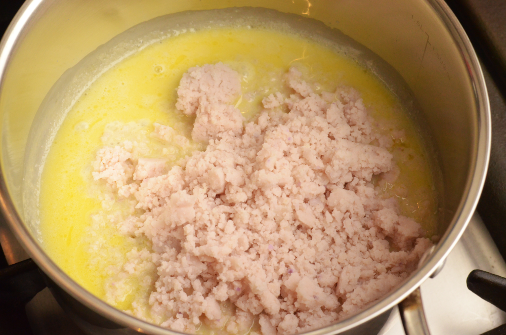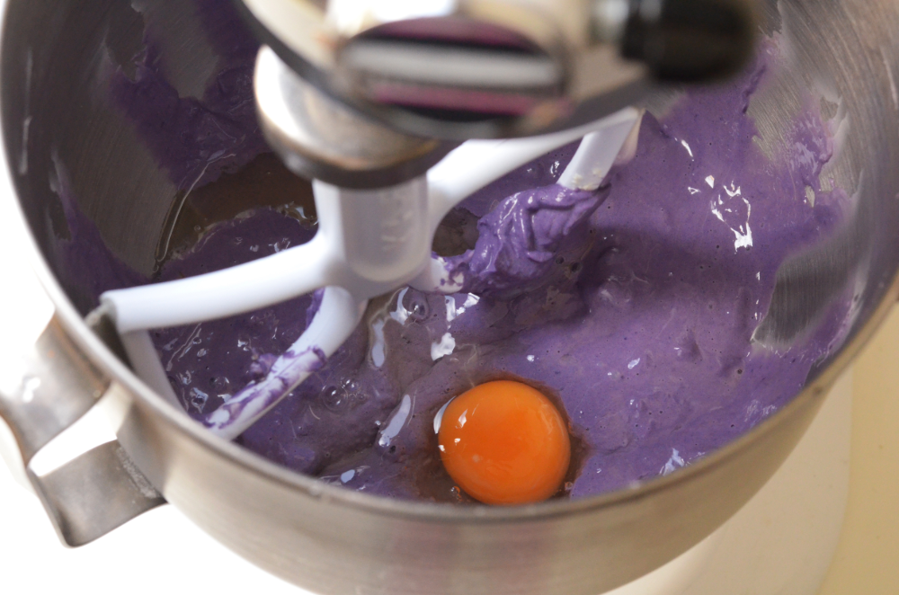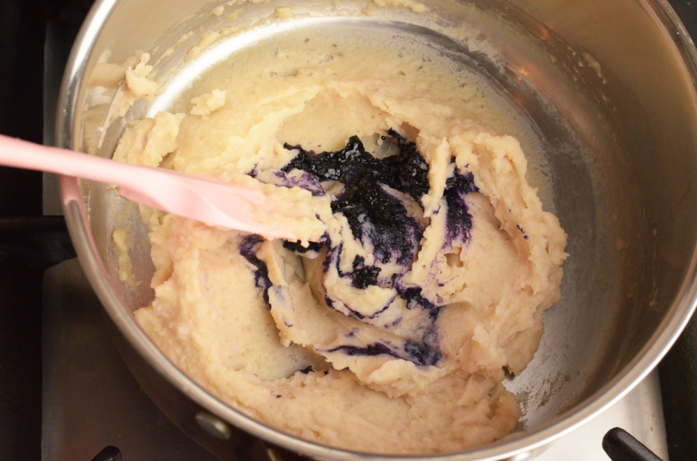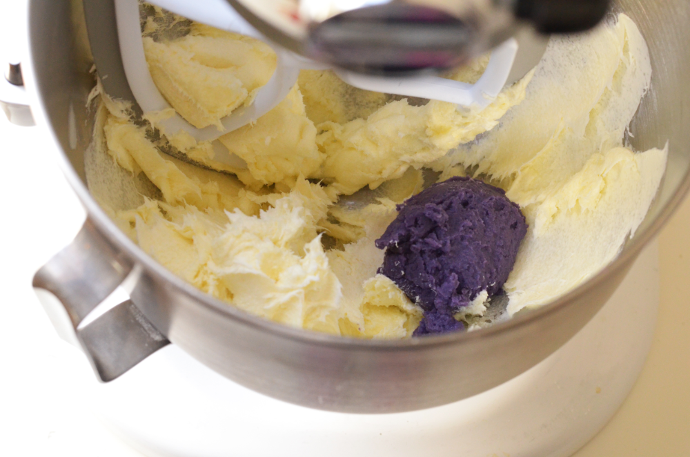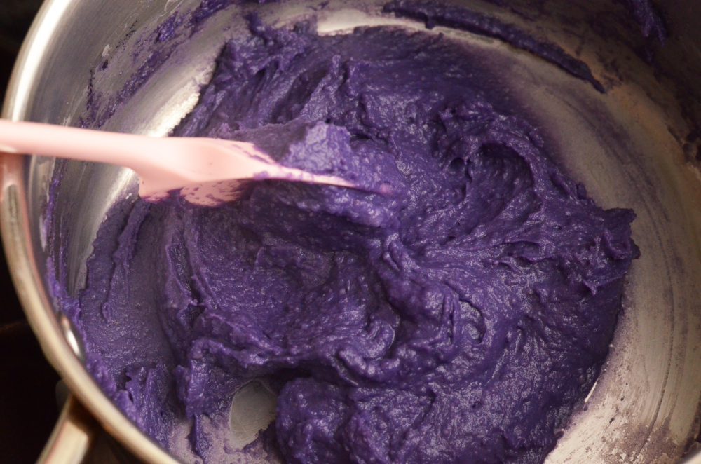 - Add in the mashed ube.