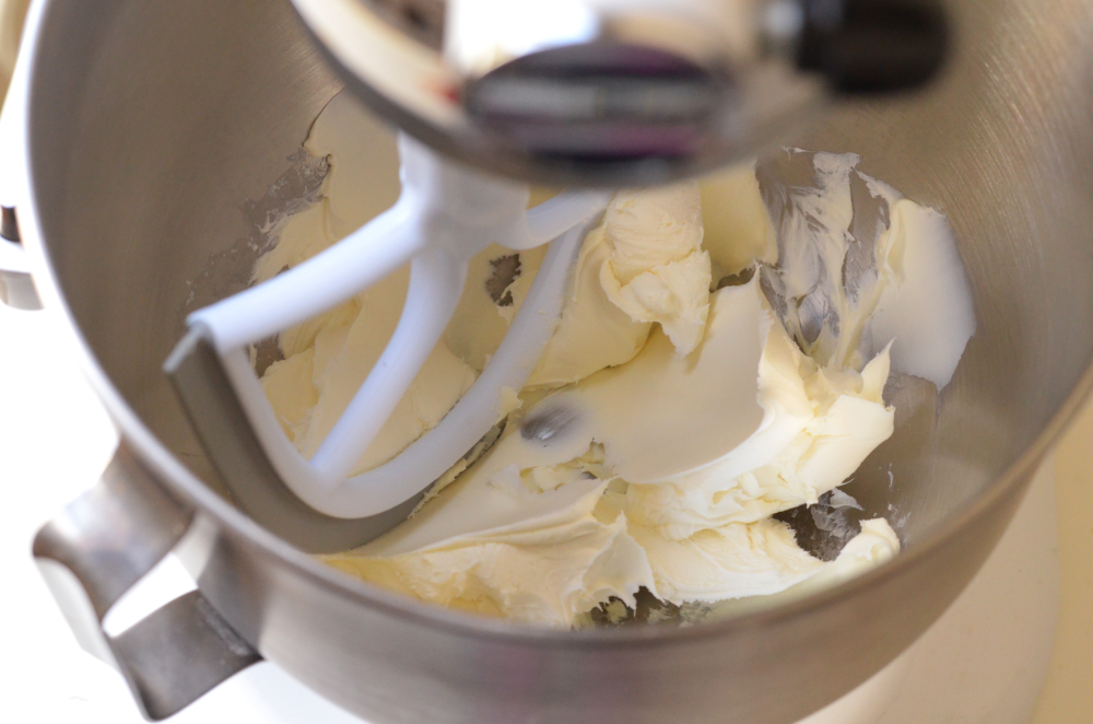 - Place cream cheese into the mixing bowl and beat for 3 seconds.