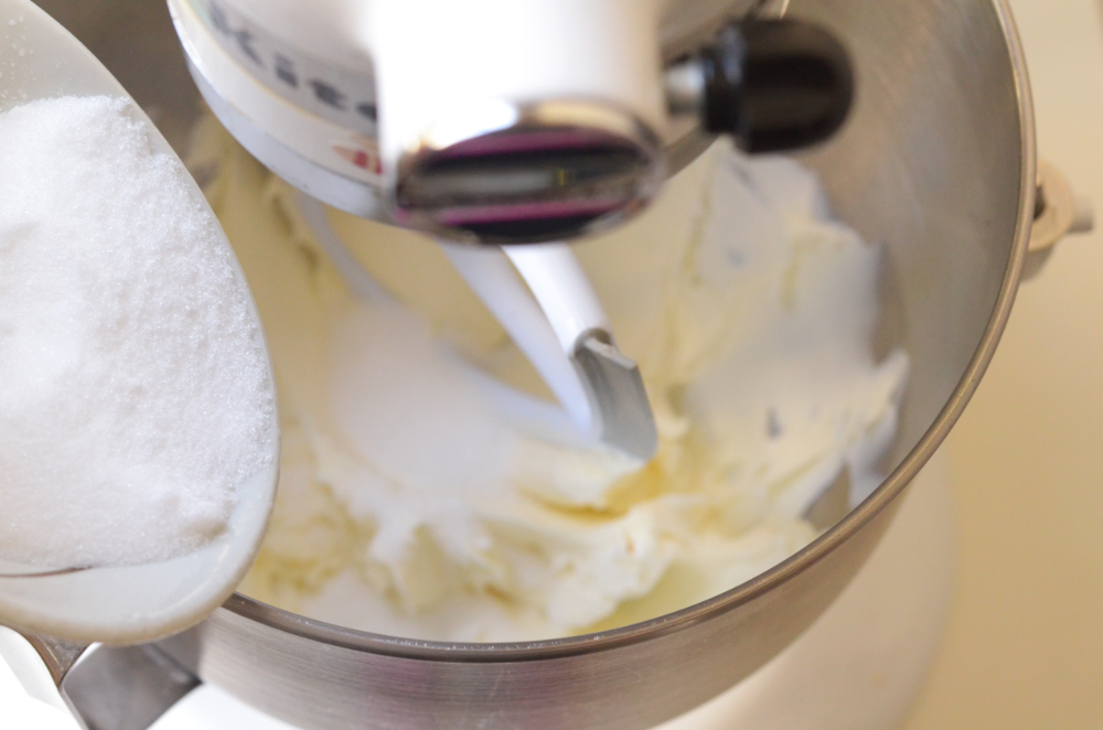 - Add in sugar and beat for 30 secs.